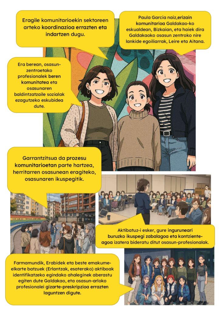 Joan den azaroaren 4an, Galdakaoko Osasun Zentroko erizain komunitarioa eta Galdakao bertan bizi diren lankideak udalerrian zehar ibili ziren, bertako aberastasun komunitarioak ezagutzeko eta auzokideen ahotsa entzuteko. Osasuna osasun zentrotik harago doalako: kaleetan, plazetan eta parkeetan ere eraikitzen da.